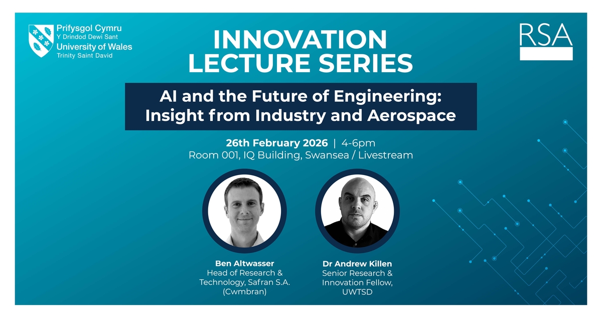 Dr Andrew Killen, Senior Research & Innovation Fellow at UWTSD, will explore innovation through the lens of mechanical design, materials development, and digital manufacturing.