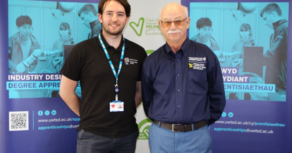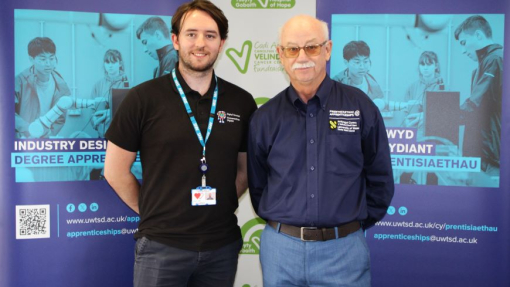 Caption: Mark Williams (left) is pictured with Steve Hole, UWTSD’s Apprentice Liaison Officer.