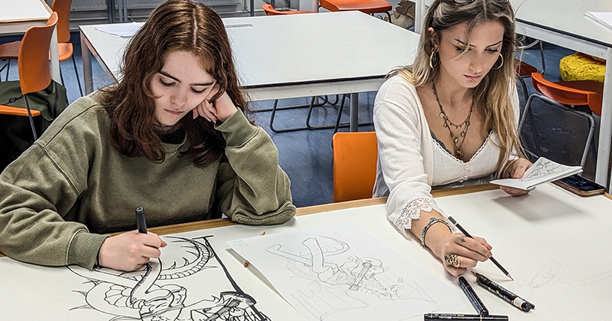 The BA Illustration course at University of Wales Trinity Saint David (UWTSD)’s Swansea College of Art, welcomed 22 foundation and third-year students from Gower College Swansea for a hands-on taster day focused on anthropomorphic illustration.