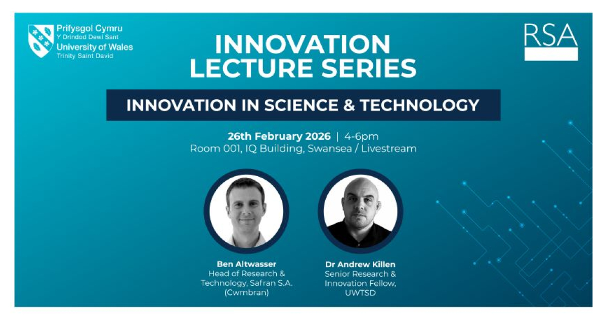 The University of Wales Trinity Saint David (UWTSD), in collaboration with the Royal Society of Arts (RSA), is pleased to announce the second event in its new Innovation Lecture Series for the 2025–2026 academic year. Taking place on 26 February 2026 from 4pm to 6pm, the lecture will be hosted at the University’s Swansea Waterfront campus in the IQ Building, with a live-streamed option available for wider audiences.