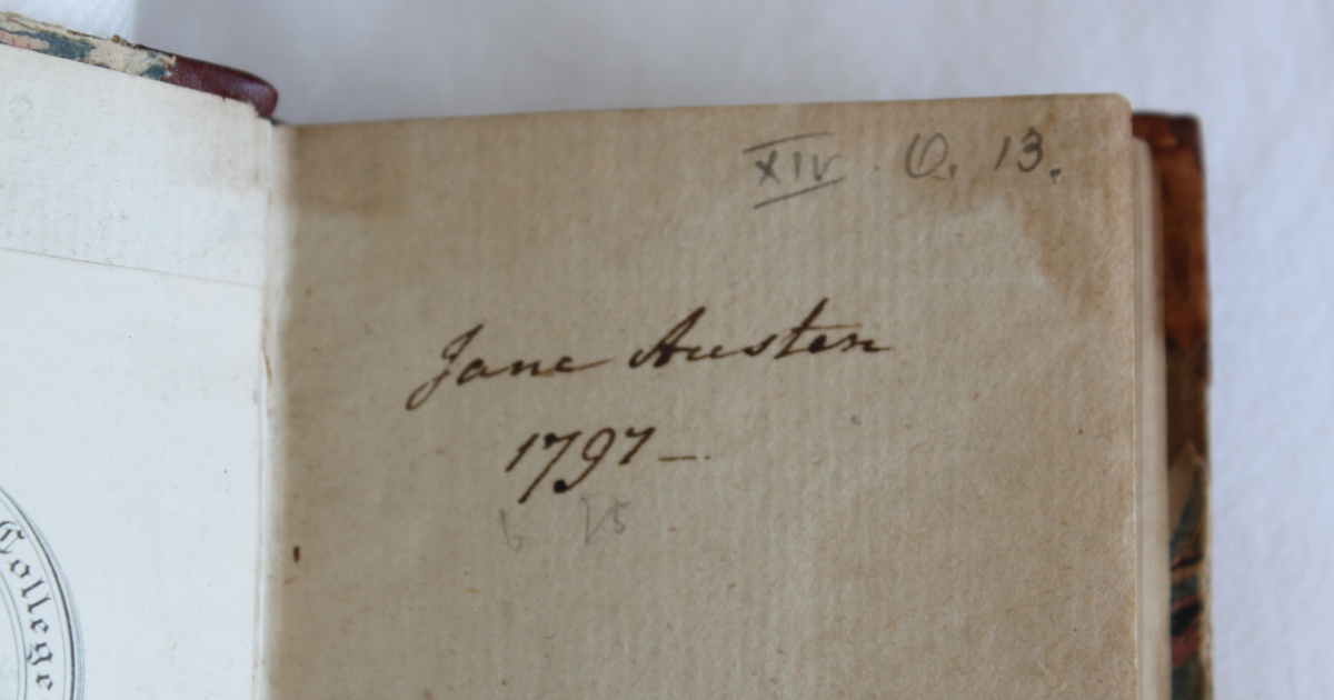 The exhibition includes a volume carrying Jane Austen’s signature, with two more signed by her sister Cassandra.